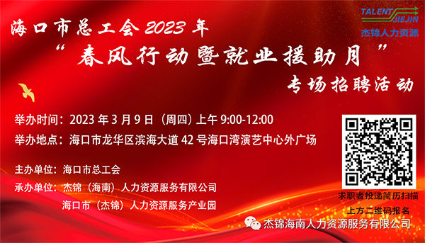 6月24日上午9時-12時,由??谑旋埲A區人力資源和社會保障局、海口市(龍華)人力資源服務產業園主辦,杰...